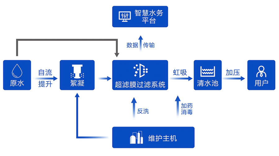 以超濾膜為核心技術(shù),出水水質(zhì)穩(wěn)定,水質(zhì)優(yōu)。